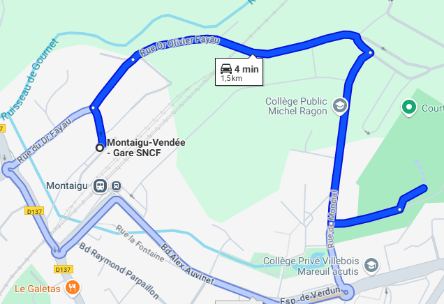 Le trajet depuis la gare prend environ 20 minutes à pieds ou 4 minutes en voiture.